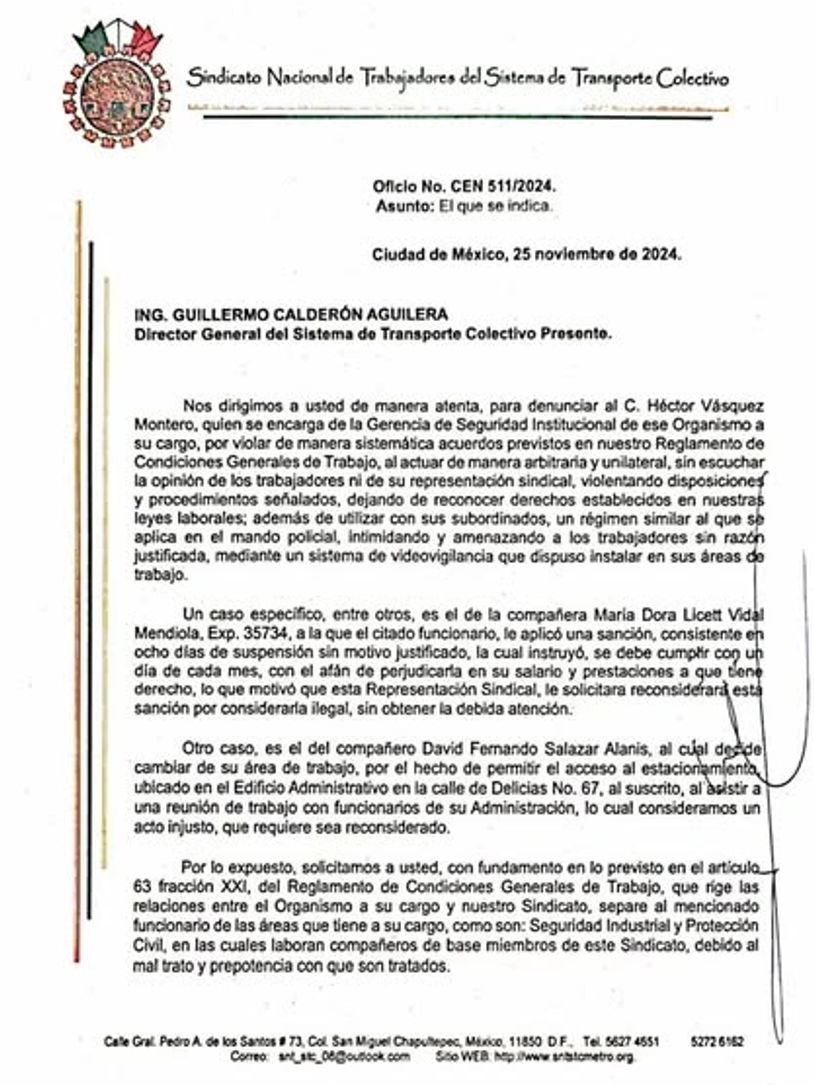 Trabajadores del Sistema de Transporte Colectivo, SNTSTC, medio de